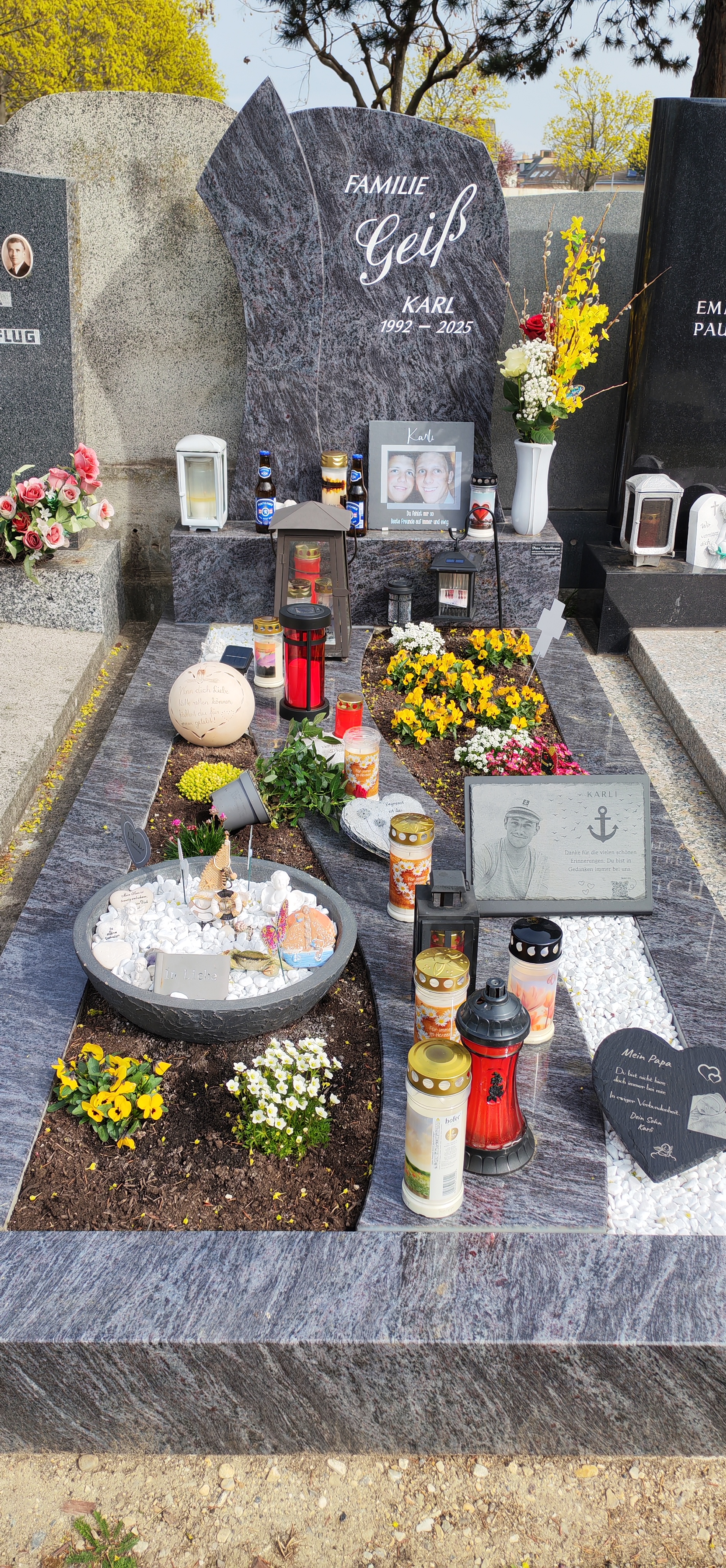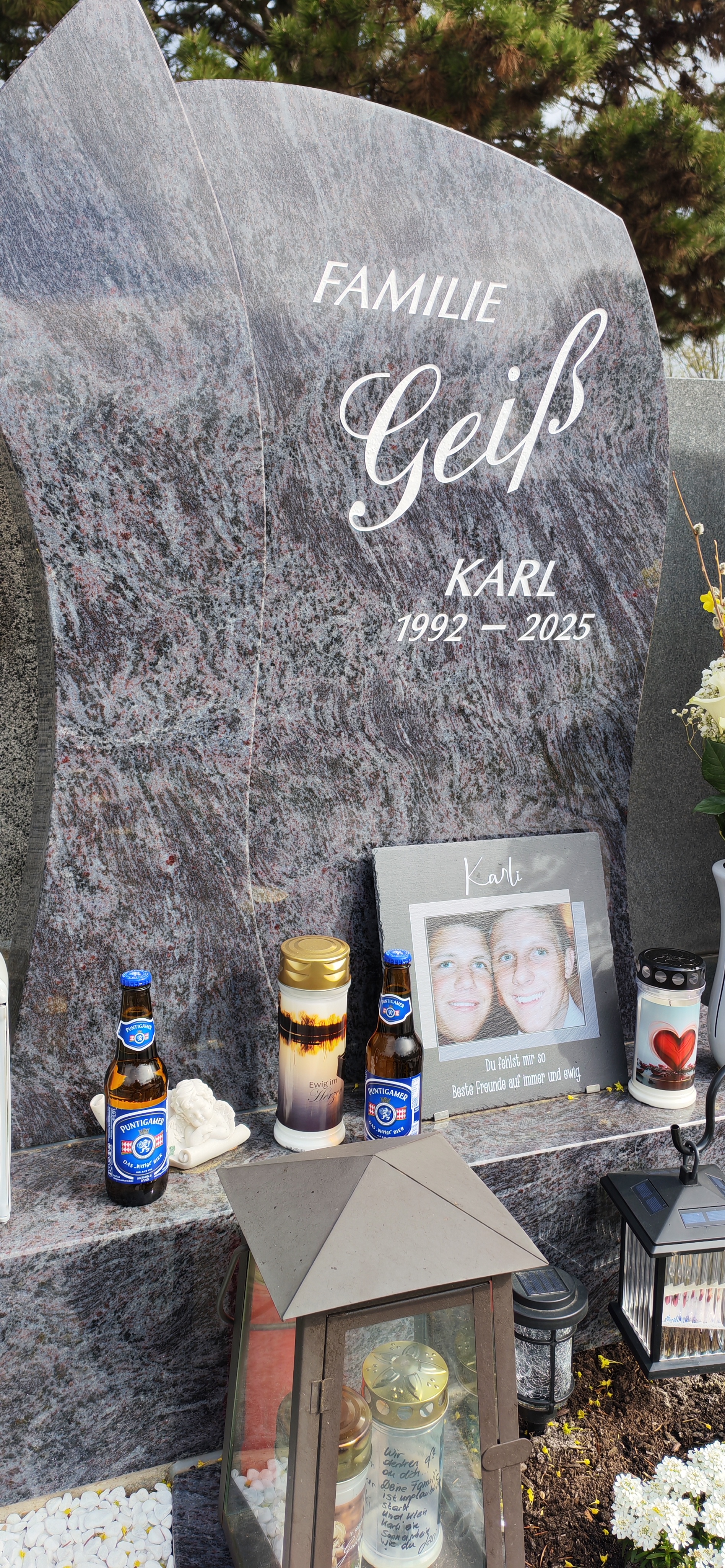 Den Moment und den Tag gemeinsam mit dem engsten Familienkreis zu Teilen war etwas sehr berührendes. Ich habe es so schön gefunden gemeinsam mit Familie und Freunde an seinem ersten Todestag dabei gewesen zu sein. Ich wünschte ich könnte es dir selbst noch sagen. Ich liebe dich Karli Dein Freund Bernd und Alex